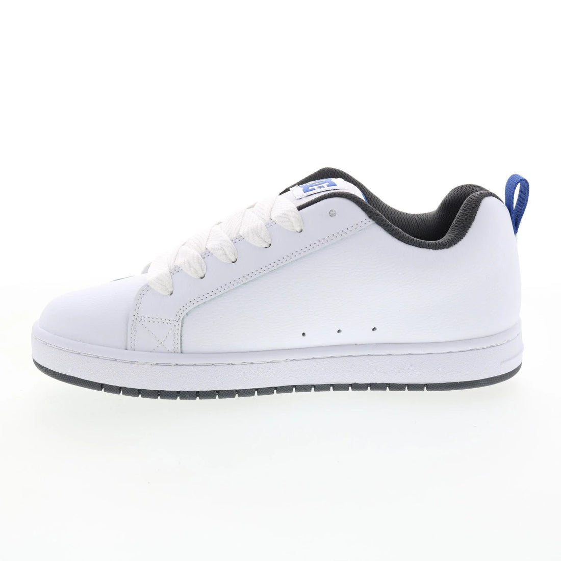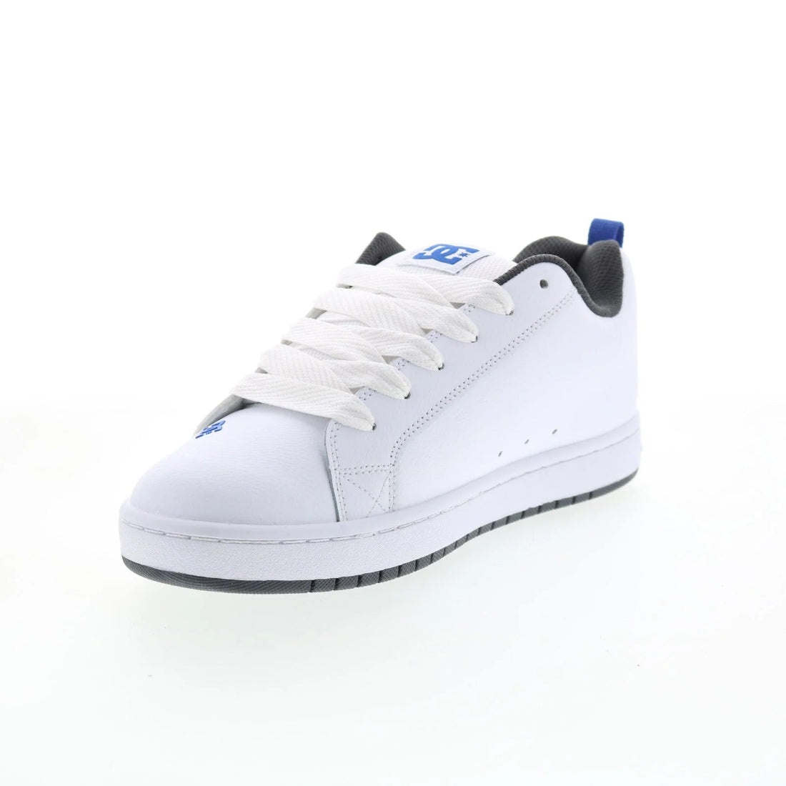 Of course. Here is a full description for the DC Men's Court Graffik Shoes in the White, Blue, and Gray colorway.
